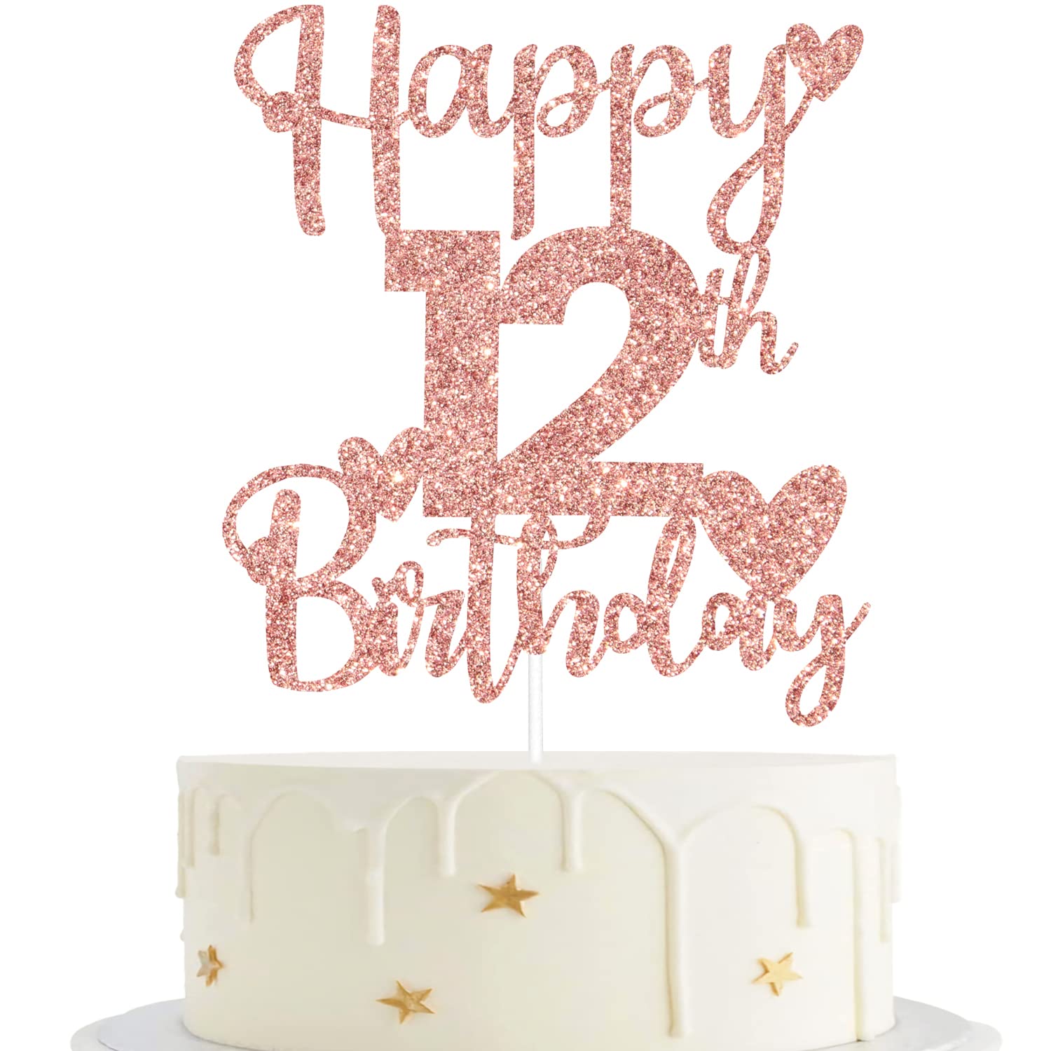 Amazon Com Huasr Rose Gold Glitter Happy 12th Birthday Cake Topper Cheers To 12 Years 12 Cake Topper 12th Birthday Anniversary Party Decorations Grocery Gourmet Food